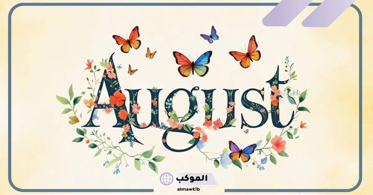 - أغسطس هو الشهر الذي يأتي في الترتيب الثامن من الأشهر الميلادية، وهو august.