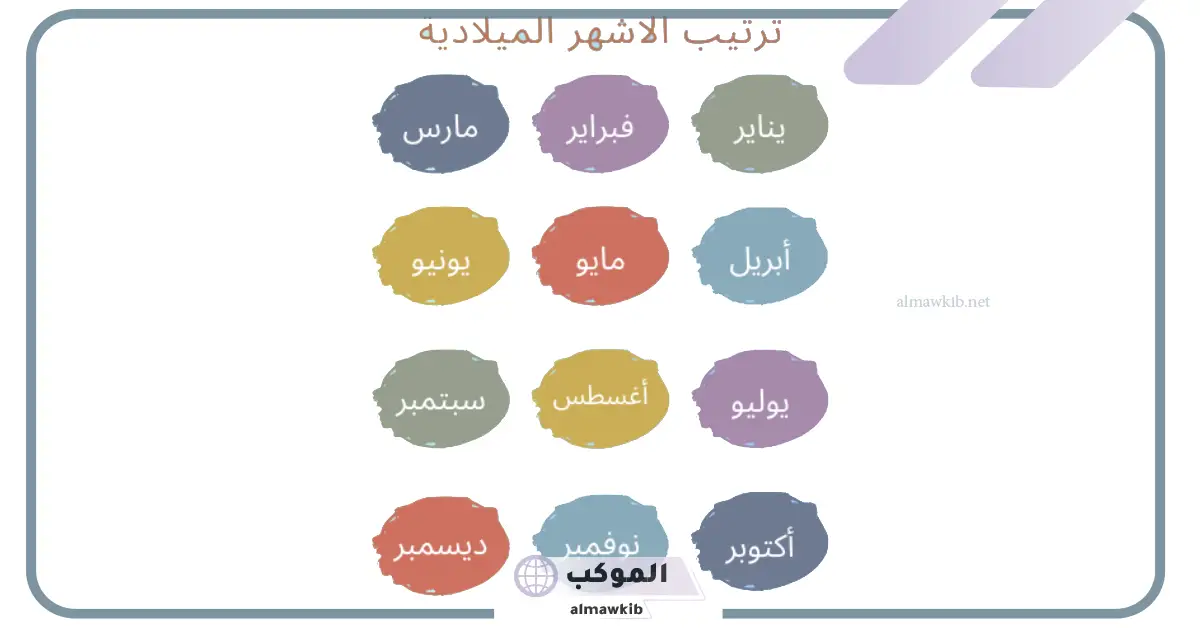 ترتيب الأشهر الميلادية بالاسم والرقم